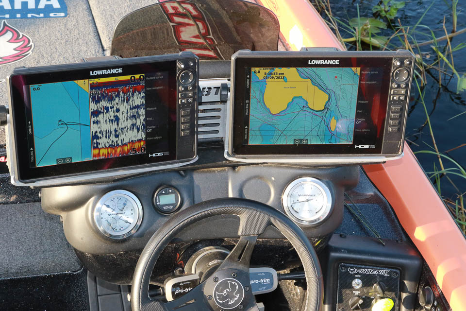 The Power-Pole Move display sits to the left of Lane’s Lowrance units.