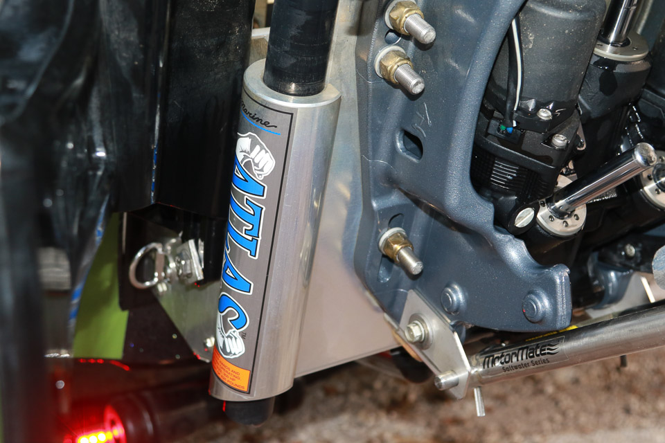 A T-H Marine Atlas Jack Plate facilitates the hole shot and shallow water navigation.