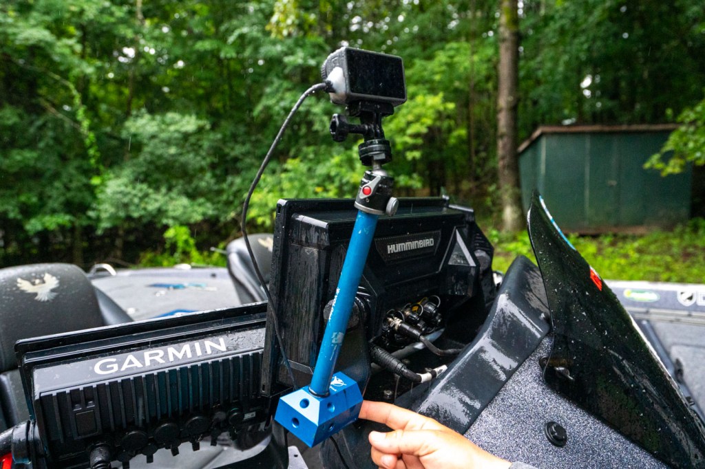 Nearly all Elite anglers run a GoPro during competition days. This mount stays out of the way and offers a solid film angle.