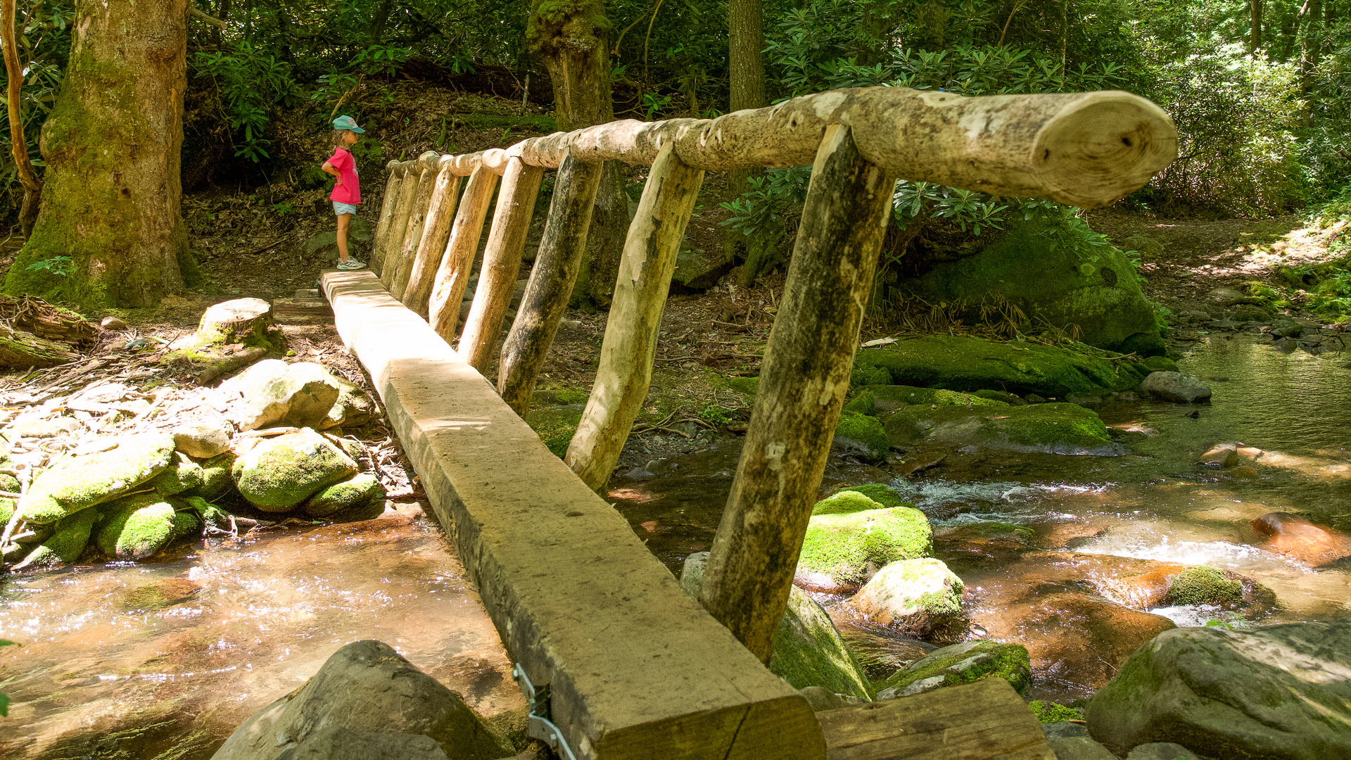 Anthony Creek Trail has wooden bridges to cross and plenty of creek access to play in.