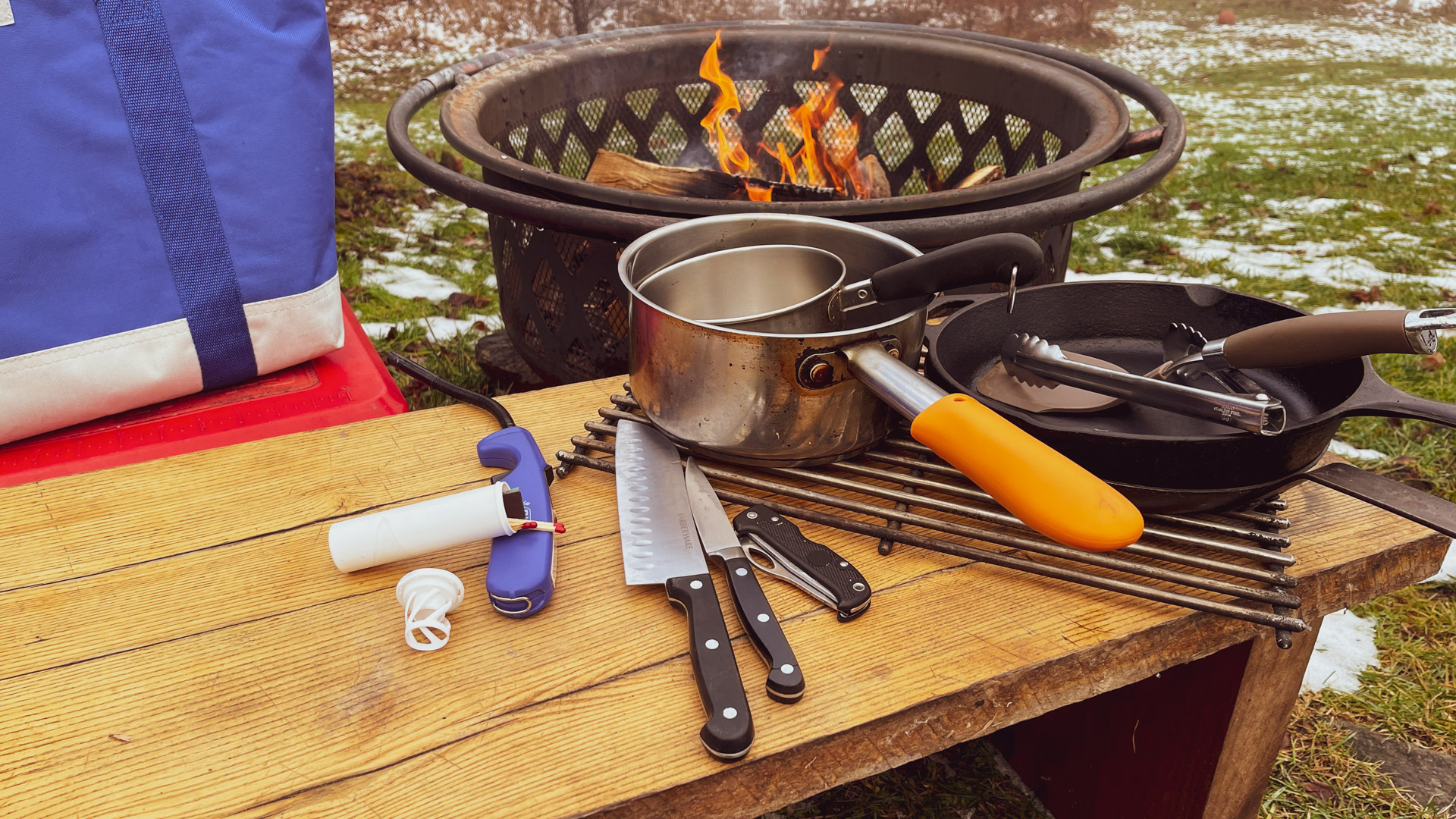 The cast-iron pan covers most needs, but an aluminum or stainless-steel pot comes in handy for boiling water for everything — from morning coffee to pasta to even sanitizing water for cooking and drinking, to doing the dishes. It doesn’t have to be big or new, just sturdy with a decent handle. My favorite sizes for camping are a 2 1/2- or 3-quart, but I will take a larger one for big groups or trips where I don’t have to backpack in. A pot can also serve as a place to pack things for the trip.