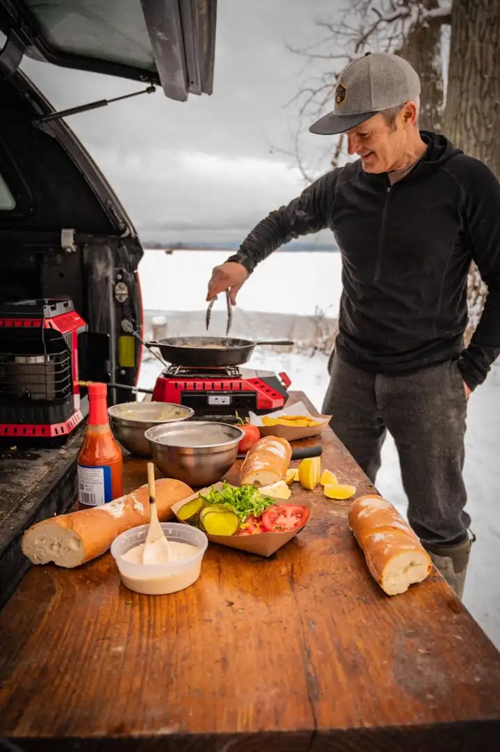 - Generously spread rémoulade sauce on both sides. Place a fried fillet on the bottom of each loaf, then add sliced tomato and shredded lettuce. Add the top of the bread and gently mash down. Enjoy!
