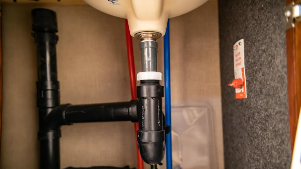 This may sound daunting to most people, but in terms of regular maintenance, it’s actually pretty simple. As you drive down the road, bumps, wind and uneven road surfaces cause your RV to shake, twist and move in ways that it doesn’t when you are stationary. Thankfully, most modern RVs are designed to handle this well. But physics can’t be denied, and things can and will loosen up over time. Periodically checking all accessible plumbing fittings can go a long way in preventing a big problem. In most applications, you’ll find red and blue PEX water lines supplying water to sinks, showers and toilets. You shouldn’t have to do much with these, but having a few PEX crimp clamps and a pair of crimpers on board is a good idea, in case you need to replace one. In cases where these lines join with braided stainless lines (like an extendable kitchen faucet), you’ll want to tighten those connections occasionally. Also check your sink drain pipes. Usually made of PVC, these fittings require simple tools or are toolless (hand tighten).