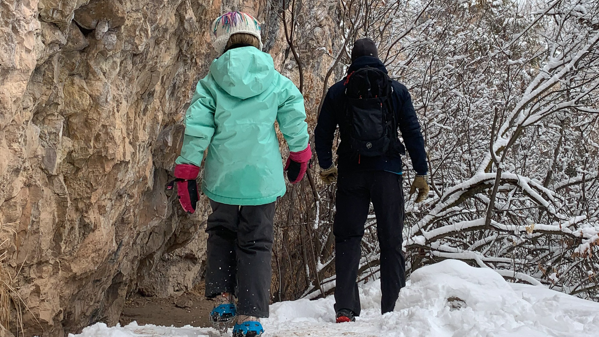 Be ready for changing conditions based on the trail and current weather. Snow can hide trail markers and the trail, so having a navigation tool and being familiar with the trail you are hiking is essential. It’s always OK to cut a hike short if the trail conditions become dangerous or if someone is cold.