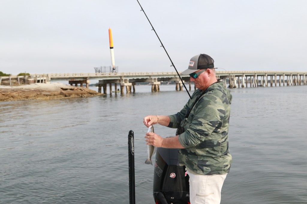 The float’s added weight helps with casting distance, but time your casts to avoid throwing during strong winds.