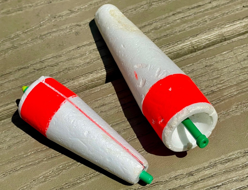 In the early days of this technique, anglers used one of those peg style corks with a cone shape and a concave head above a natural or artificial bait. Tugging the line tipped the cork over and created a chugging, popping sound that mimicked a feeding predator, or perhaps, a struggling baitfish.