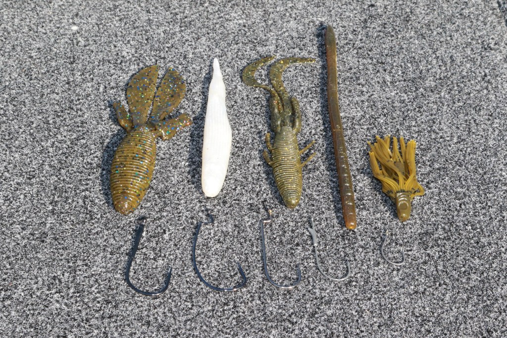 Note: We obviously need treble hooks for those hard baits and the super strong, super sharp twin hooks for frogs, but we’ll focus this discussion on single hooks for soft plastics.