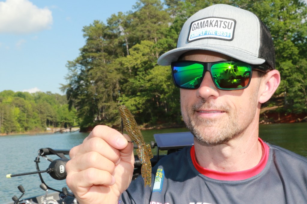 While the split shot rig (basically a split shot crimped a foot or so above the hook) has its place, Crews does more work with a dropshot. From bedding largemouth, to deep smallmouth, to spotted bass on points, this unique rig allows you to suspend a bait off the bottom and hold it in place to entice the fish.