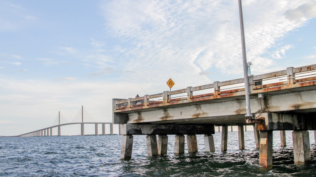 The bridges with designated pedestrian lanes shielded from passing traffic are ideal. In many cases, replaced or damaged bridges (for example, the Sunshine Skyway Bridge across Tampa Bay) are retrofitted with restrooms, parking, etc., to accommodate anglers.