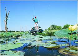 Just as is the case in any bass fishing scenario, any irregular feature above and below the water can be a hot spot. Texan Randy Dearman looks for points in the pads, open areas or even a slight change in depth.