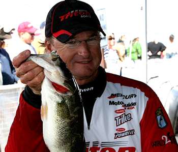 While some anglers would presume falling water would push the fish deep instantaneously, Klein was committed to several fairly shallow schools of bass. "Every fish I caught was in less than 3 feet of water," Klein says. "I fished in the muddy water, and that pretty much eliminated all of the other boat traffic. That's golden when you get to fish on a lake that good, with that many anglers on it, and you get the opportunity to fish an area all by yourself. What that gave me the opportunity to do was relax a little bit. I didn't have to be as thorough with the fish that I had found."