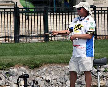 He typically fishes lures with rounded bills in open water, where he expects they won't come into contact with cover. He dotes on a square bill when he really wants to bang through the heavy stuff, places most anglers would pitch a spinnerbait or flip a jig or soft plastic. Therefore, he uses two different rods for cranking: a 7-foot medium-action Daiwa Steez Flex Lite for rounded bills and a 7-2 medium-heavy rod from the same line-up for the square-bills.