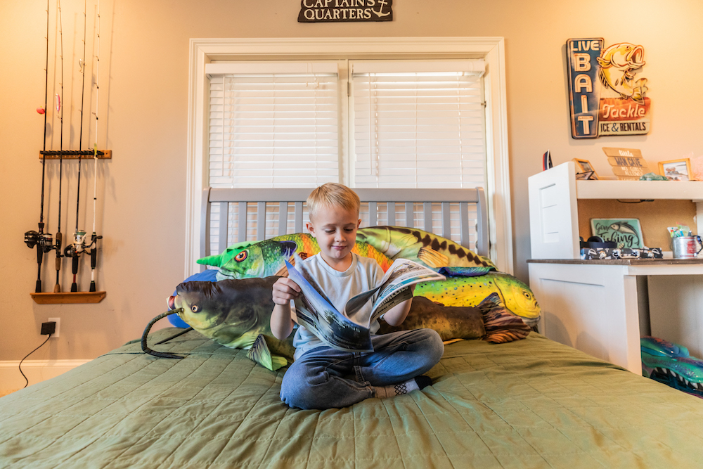 He reads, looks at fishing magazines, watches fishing on YouTube and practices casting off his bed as if it were a boat.