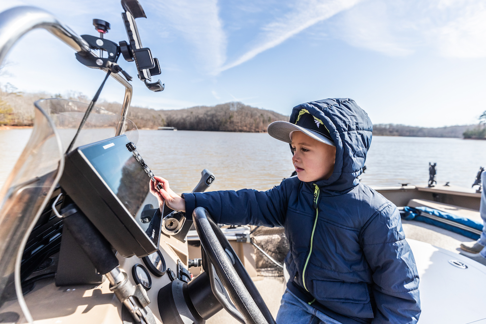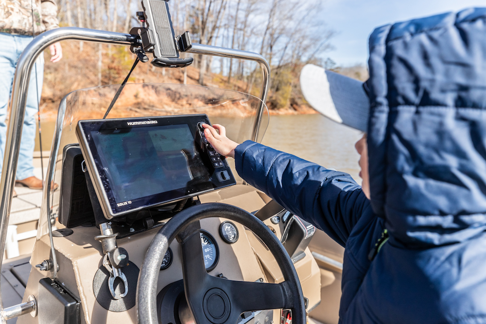 Gunnar and his dad also go to this boat ramp about twice a month. The family boat is equipped with electronics.
