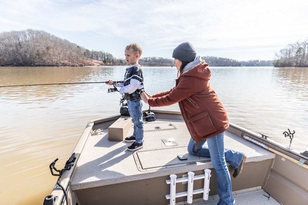 Mom steps in with some encouragement for the young angler.