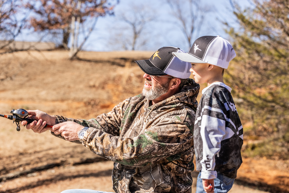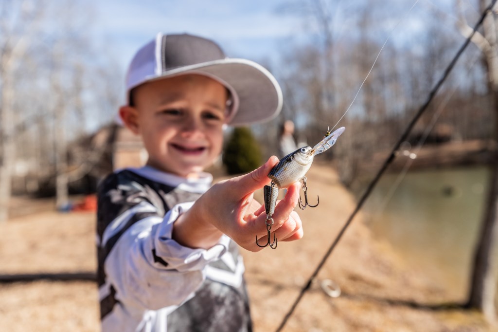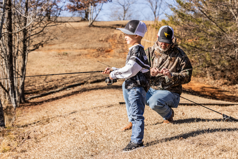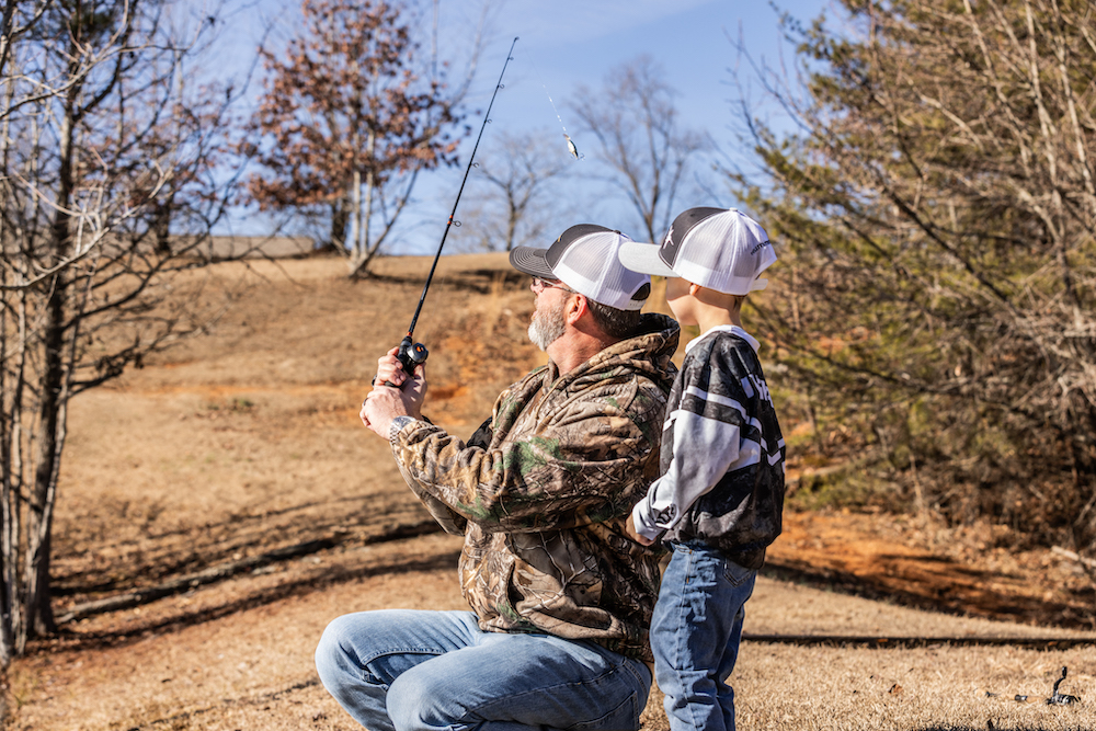 Now it’s time for some baitcaster practice with dad.
