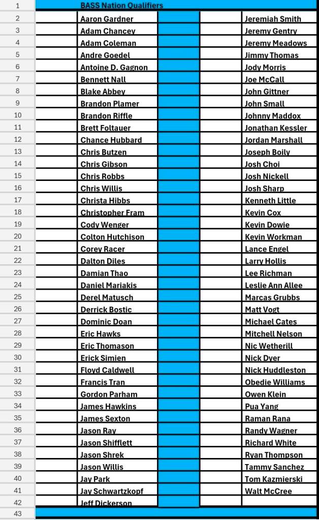 | Angler | State | Qualified |
