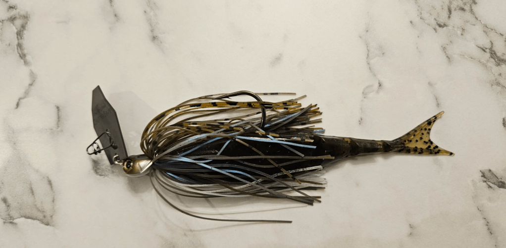 For larger groups set up to ambush on the ledge, Audi threw a Hog Farmer Tactical Bassin Flex Rig 5 Blade with three 3/16th oz 6th Sense jigheads and 2.5” Crush City Mayor swimbaits in Tennessee Shad and Green Pumpkin Disco on a Shimano Expride B 7’7” moderate/heavy rod paired with a Tranx 200A spooled with 25 lb Seaguar Tatsu line. All of the tackle he used was purchased from Susquehanna Fishing Tackle in Pennsylvania.