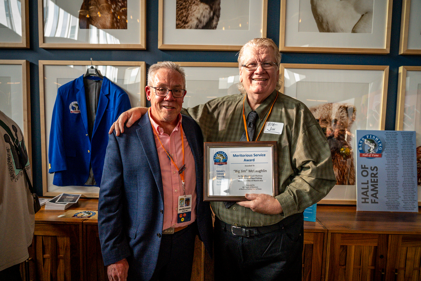 SPRINGFIELD, Mo. – March 1, 2023 – FOR IMMEDIATE RELEASE – In keeping with its mission of celebrating the sport of bass fishing, the Bass Fishing Hall of Fame Board of Directors will be honoring Jim McLaughlin from Seely’s Bay, Ontario with its special ‘Meritorious Service Award’ during its upcoming sponsor/donor reception at the Bassmaster Classic in Knoxville.