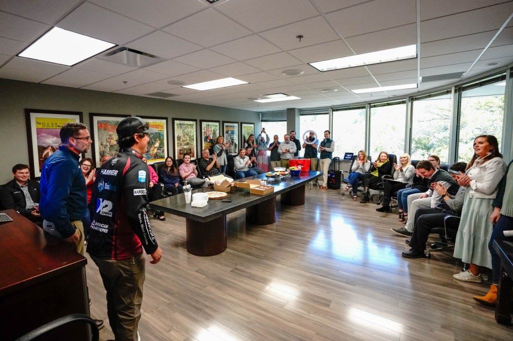Following his Bassmaster Classic Victory, Justin Hamner was greeted with a welcome committee at the B.A.S.S. and Yamaha headquarters to celebrate his victory.