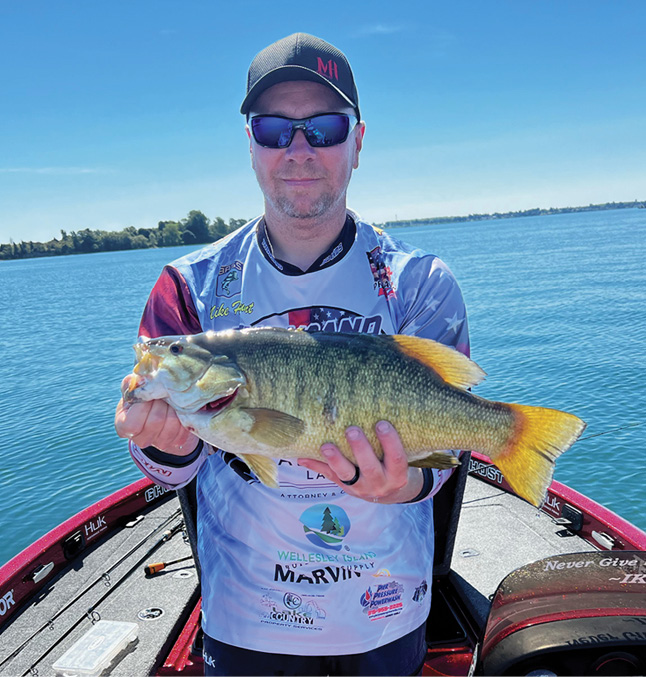 5/16-ounce tungsten Texas rig (watermelon bluegill)