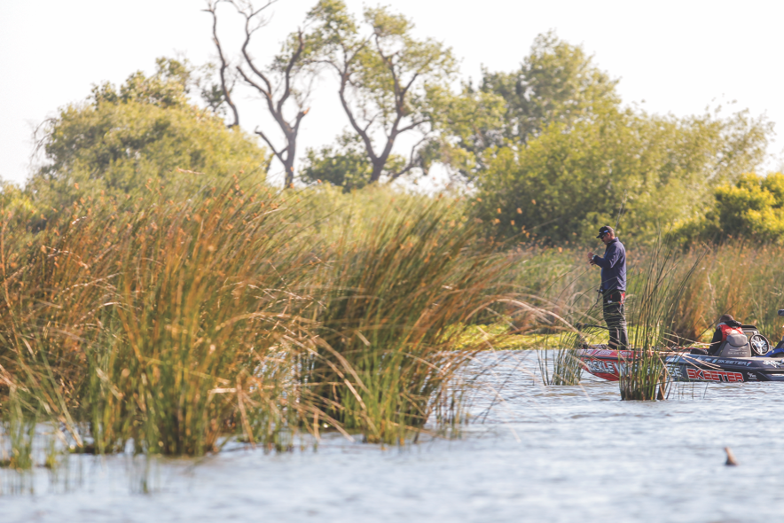 “The water rose beyond flood stage,” he recalled. “I was throwing a spinnerbait, but the water was up over the stationary docks that I always flip, so I couldn’t skip them. Homeowners opened their garages so that they wouldn’t bust, and I ended up flipping inside the garages on their property. Not boathouses — garages. I caught fish off of tool chests and golf club bags. It was just stupid.”
