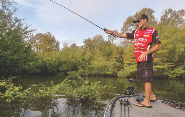 After Combs casts or pitches a jig, his hop-crawl-swim gambit begins with a typical bottom presentation. After he hops or crawls the jig out of what he perceives to be the strike zone, he reels the bait back slowly enough to keep it swimming just above the bottom. It takes discipline to maintain such a plodding retrieve under the intense pressure of tournament competition. “People get caught up quickly reeling a jig right in,” Combs said. “When I catch myself doing that, I remind myself of how many bass I’ve caught by slowing down.”
