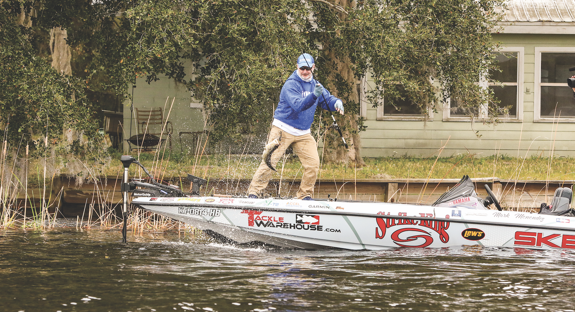Immediately after the spawn, we know there’s that two-week period when bass will go off, suspend and recover. Once they get their appetite back, and water temps reach the low 70s, they’ll readily smash a deep-running crankbait that whizzes by the offshore structure they’ve been vacationing on. Add 10 degrees to that water temp and they’ll have the same appetite but they won’t be so keen to chase down a lure. There are a couple of methods for enticing those deep, slightly more lethargic bass. Bassmaster Elite Series pro Hank Cherry might “swim a jig.” Mark Menendez might “stroke a jig.” But they’ll both put bass in the boat.