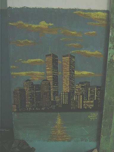 Drop by tiny drop, he drew a painting of the Twin Towers.