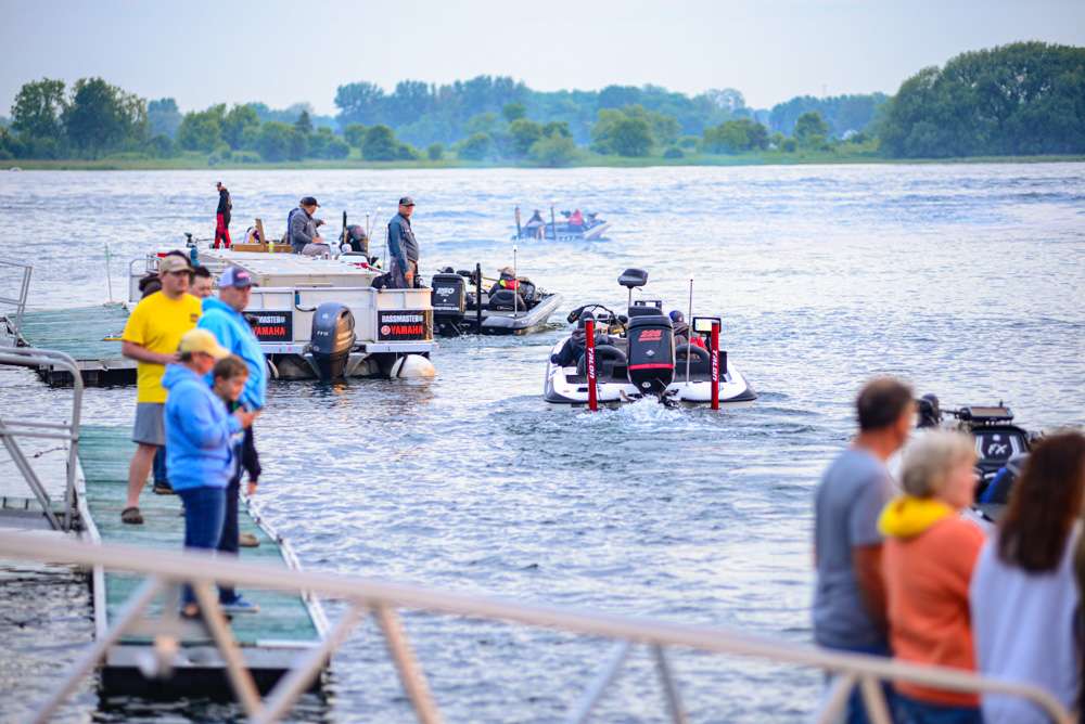 The full field took off beginning at 5:30 a.m. Thursday, with the Day 2 weigh-in scheduled for 1:30 p.m. ET at Whittaker Park in Waddington. The field will be cut to 12 after weigh-in is complete.