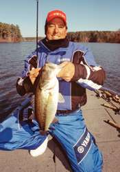 "Not knowing the lake, I'm convinced I made the right decision by staying shallow most of the day," Wolak told Bassmaster. "Fishing offshore structure is a good strategy this time of year if you know where the deep stuff is. The bite definitely picked up in the afternoon, which isn't uncommon this time of year › often the baitfish get more active and the bass move shallower as the sun warms the water. If I were to fish here tomorrow, I'd concentrate on the extreme back ends of the creek arms and hope I'd catch some of the bigger fish we saw cruising around today."