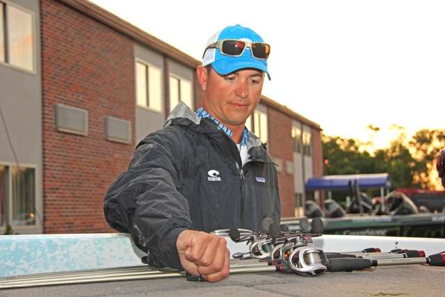 5:43 a.m. – Casey is the last pro to pull out of the hotel parking lot. What was a traffic jam of fiberglass 13 minutes earlier is now a lonely looking patch of asphalt. “This river is fishing a lot different this year. You could get 50 bites a day last year, but in practice Monday and Tuesday, I fished 15 hours for 15 bites a day,” he explains with confirmation of the days being long here.