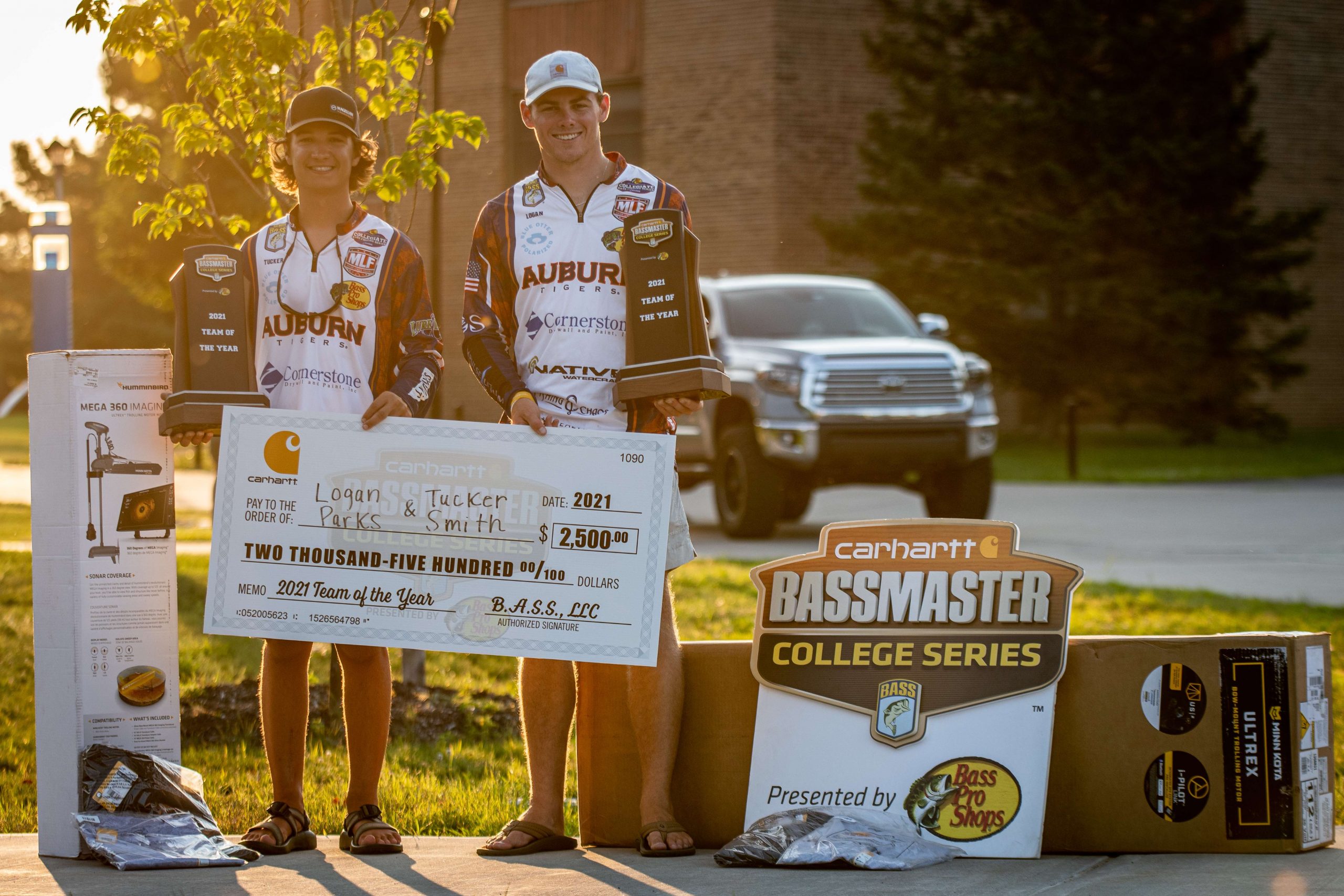 Along with a $2,500 check, the Auburn pair also won a Minn Kota Ultrex trolling motor and a Humminbird Mega 360 unit from Johnson Outdoors and new gear from Carhartt.