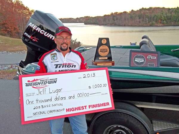 LAKE DARDANELLE, Ark. – As if winning a national championship and a berth to the Bassmaster Classic didn’t have Virginian Jeff Lugar feeling affluent enough, he now feels even richer thanks to the $1,000 check he recently received from BoatUS Angler’s “Weigh-to-Win” program.