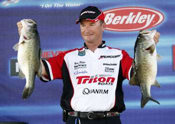 If I don't know the lake very well, the first thing I do is a lot of Internet research. Once I'm there and I launch my boat, I turn on my electronics and go across a main portion of the lake: a river arm, a big bay or cove — something that has a defined creek channel in it — and just run a straight line from bank to bank. In a very short period of time you will start noticing the information on your electronics is really starting to direct you to a depth of the activity zone. For example, if I launch at Table Rock Lake and idle across the main portion of the lake, I might see balls of fish at 45 feet and nothing above those depths or below those depths. Then my mind starts trying to look for contours or structures that break or have some kind of features on them at that 45-foot depth. I rely so much on my electronics — they really do become my underwater eyes.