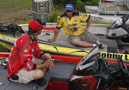 Bondy had a 4-pounder and a 3-pounder this time, but wasn't as fortunate. The larger fish got off and he landed the 3-pounder."Then I struggled, struggled, struggled some more," Bondy said. "In the last two minutes, I caught about a 2 1/2-pounder."That became a big bass for Bondy, when the totals from the 108-angler Elite Series field were compiled. His 15-pound, 3-ounce limit Friday, when added with his 8-2 on three fish Thursday, gave him a total of 23-5. And, most important, it put him in 50th place and guaranteed him a $10,000 check for the Lake Murray tournament.