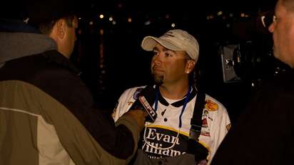Scroggins is the only angler in the tournament to sack at least 20 pounds both days, a distinction he achieved by working three patterns: a shad spawn early, sight fishing at midday and a deep crankbait pattern late. "You're going to have to do multiple things to win," Scroggins said. The main one, he concurred, was to score that elusive big bite.