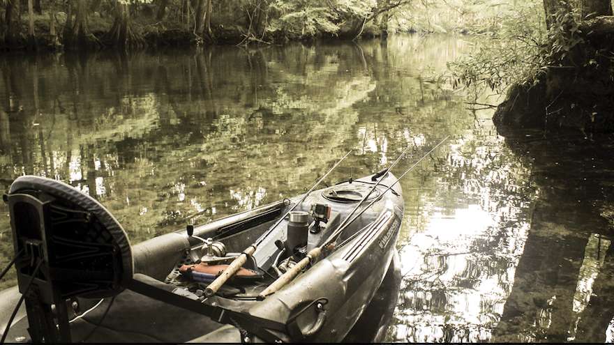One morning in early May, I took an exit marked by a roadkill alligator looking like a shredded tire that flew off a monster truck. Imagine hitting a dinosaur like that on the way to the launch ramp. Once I parked at Wacissa Springs, I was immediately in Florida wilderness. It was like a scene from Avatar, with towering trees draped in moss and lily pad fields and egrets and grebes and herons and gators. The chorus of bird-speak was loud and throbbing. I launched and started fancasting a white trick worm at vegetation. An early north wind pushed me with the current, and I hit hydrilla stands and eelgrass for the next few hours without a bite. Schools of mullet ran roughshod through the channel, and I dodged gators sunning on weed mats and followed a family of wary otters.