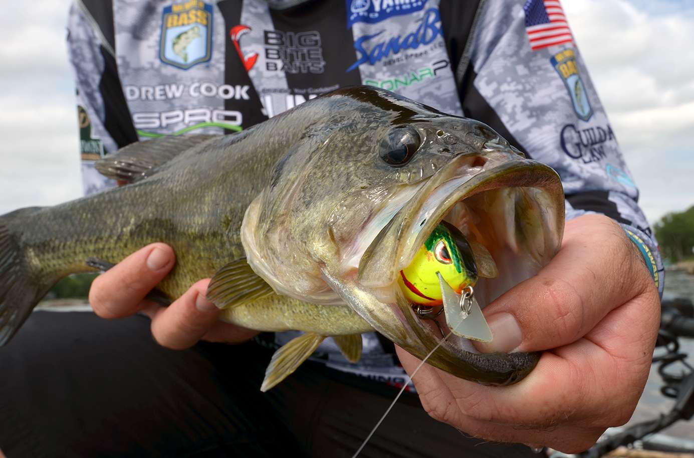 Since bass are such opportunistic feeders, coloring a lure to look like a specific forage fish isn’t always the best way to go. In one instance, Cook’s bass were feeding on bluegill and shad. He gave the bass the best of both worlds by adding some chartreuse to the sides of a shad-colored bait.