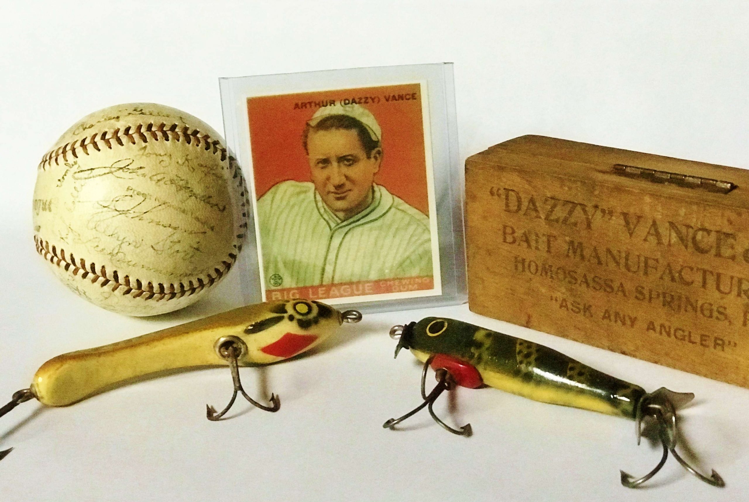 Special thanks to Ed Bauries for lending a photo of his outstanding collection of Dazzy Vance lures, and to Bill Stuart, Doug Brace and Russ Riddle for their efforts in researching the Dazzy Vance Bait Company.
