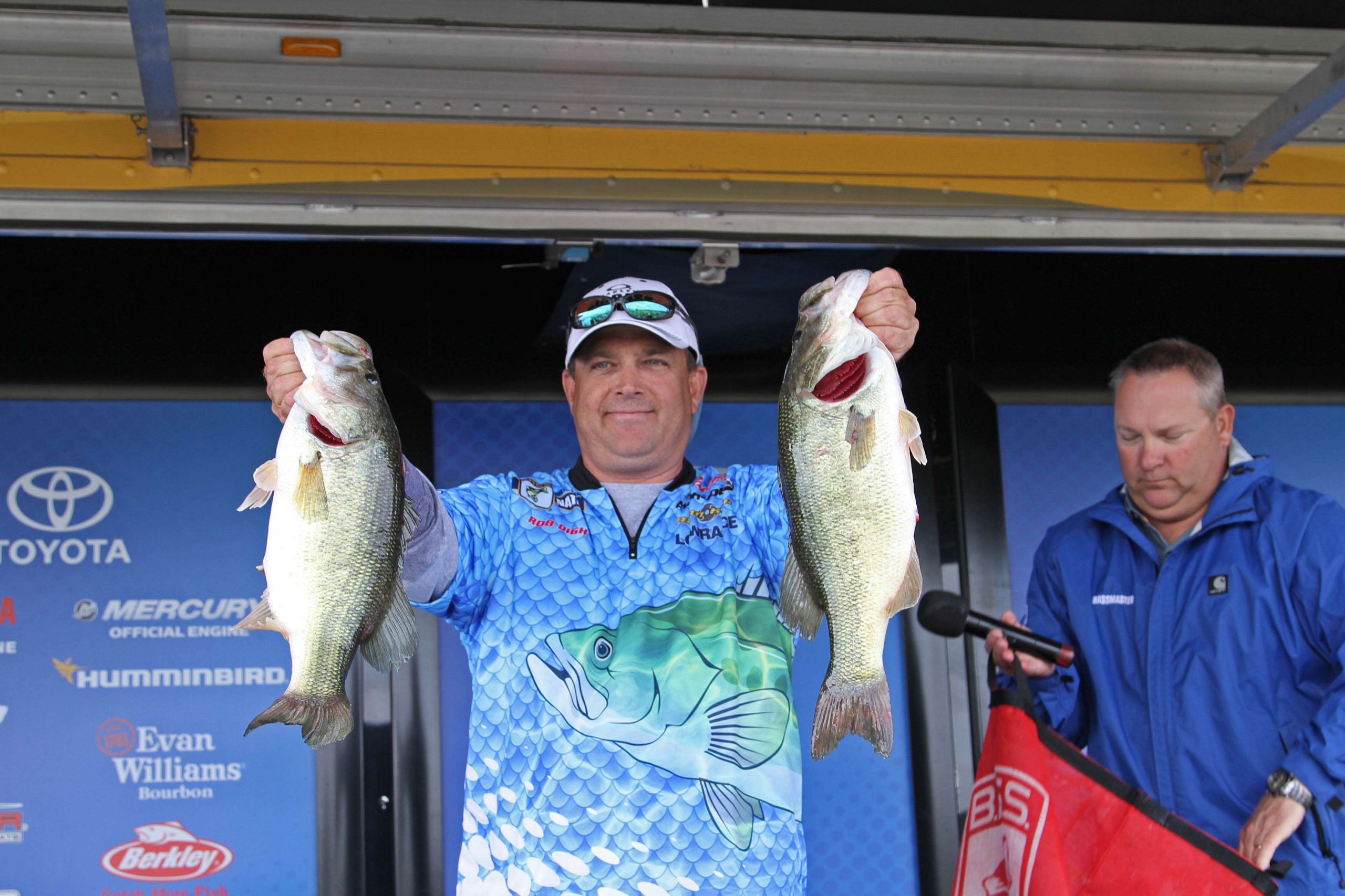 Jack Smith’s 7-pound bass from Day 1 is currently in the lead for Carhartt Big Bass honors, a $500 prize awarded to the biggest bass of the tournament. Today’s biggest bass, a 6-13 caught by Michael Boggs of Kentucky, didn’t top it.