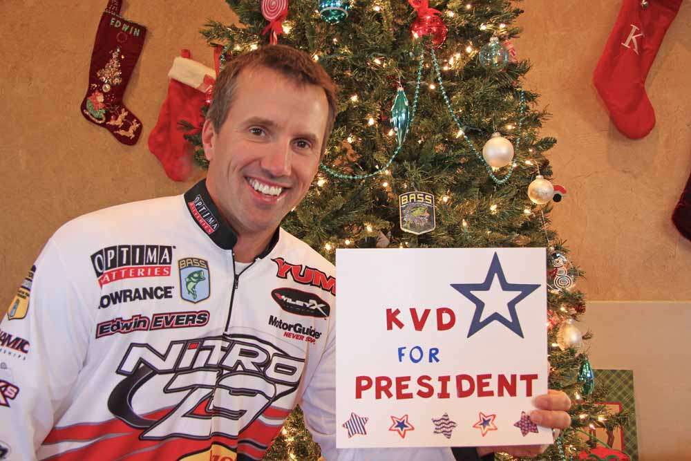 Speaking of government, Edwin Evers is wishing Kevin VanDam would run for President of the United States. “I’m wishing that somehow Kevin would stop being so dominant on the water, lose interest in fishing, and go run for President of the United States. That way, the rest of us would have a chance to win more often, and if we can get Kevin elected, I’ll promise you, our country will be way better off. I’d vote for him,” grinned Evers, who two years in a row, has settled for second place behind KVD in the Toyota Tundra Bassmaster Angler of the Year points race, yet mustered ample class to spotlight VanDam’s good character.