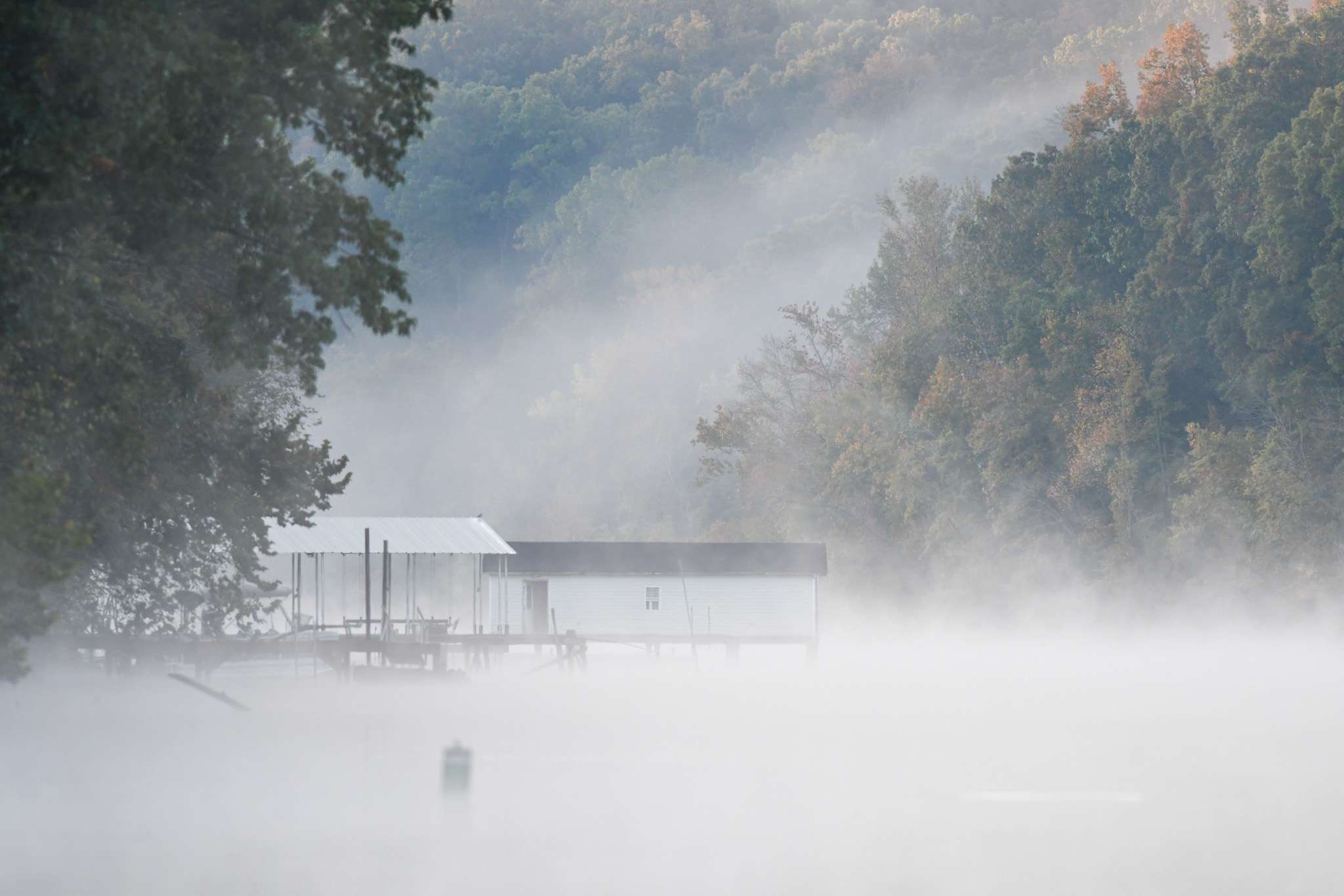 And with that announcement by Dave Mercer, the fog delay begins at Dayton Boat Dock. The fog is getting thicker, rolling into Richland Creek off the Tennessee River channel.