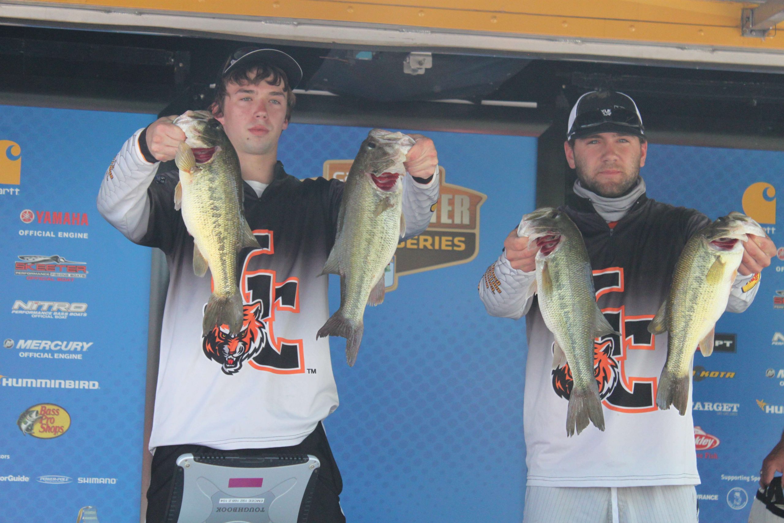 Shane Lehew and Eric Self of UNC Charlotte had no shortage of fish but an abundance of bad luck on Day One. Even though they brought in 16-11, enough for second, and the Carhartt Big Bass weighing 5-5, their day was far from perfect. In addition to suffering a day ending mechanical issue, Shane Lehew had a couple of mishaps with big fish that show promise for a 20-plus-pound bag on Day Two.