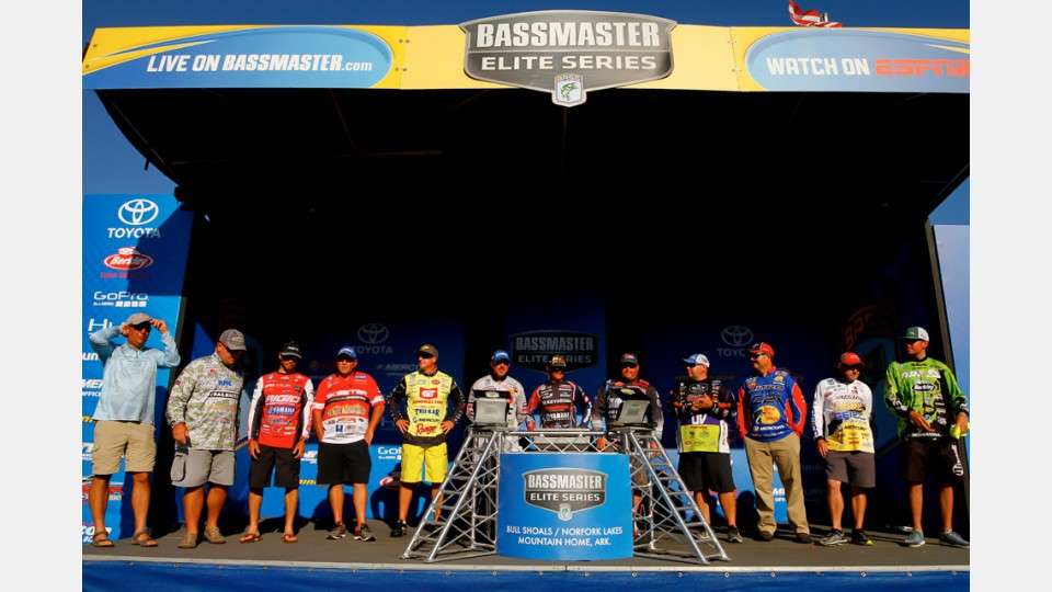 MOUNTAIN HOME, Ark. — The unique two-lake format of the Bassmaster Elite at Bull Shoals/Norfork will most likely end in dramatic fashion today. There’s going to be some drama when only 3 pounds, 10 ounces separates first place from 12th place.