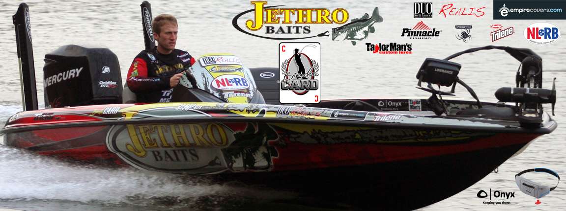 Card landed the deal with Jethro Bait Manufacturing Co. of Lake Wales, Fla., not far from the Elite season opener on the St. Johns River out of Palatka. The wrap is a bold yellow and red design with a dominant circular Jethro logo in the center.