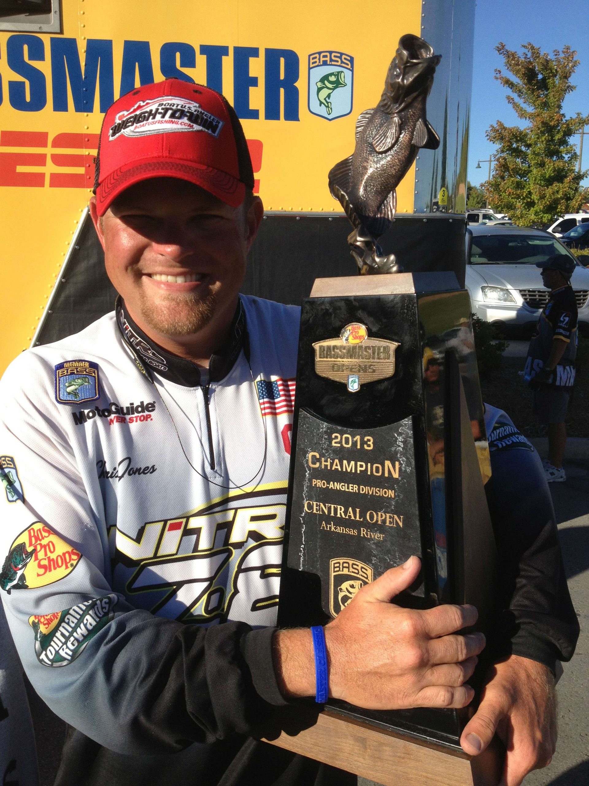 The bracelet can now – well, almost – come off. Today Jones succeeded at his goal by winning the Bass Pro Shops Bassmaster Central Open #2.