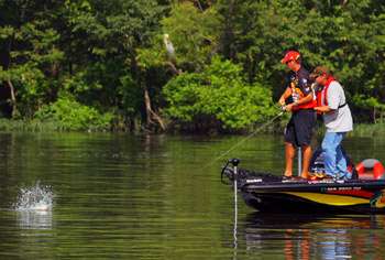"I had a long milk run — maybe 15 or 20 places along the drops and ledges — that I fished intermittingly all four days," said the Muscle Shoals, Ala., professional. "The bass were schooled on those places in 10 to 12 feet of water and stayed pretty much in the same spots all four days. They were obviously holding with the shad.