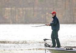 He was most successful paralleling the outside edges of grass (in 1 to 3 feet of water) located in the pockets of select creeks. When the water level dropped, VanDam points out, "there were no drops or ledges you could target."