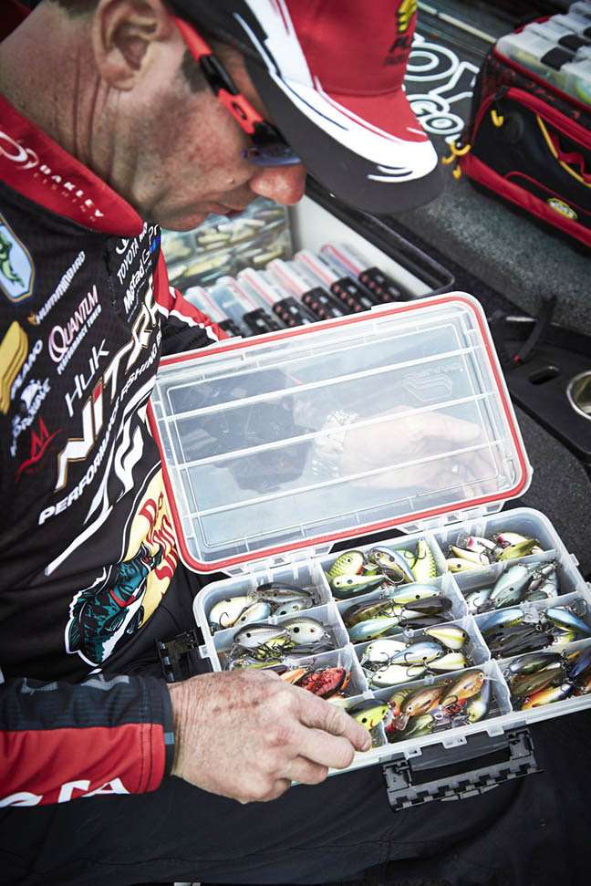 After changing 1,500 or more hooks in his shop, VanDam neatly organized each newly adorned lure into Plano waterproof Stowaways, certain they would protect his investment. “I spent that much time changing all those hooks,” VanDam mentioned, “so I made sure they got placed into a box that never pops open, never lets in water and can handle rough boat rides.” The meticulous system lends confidence to the angler’s efficiency, which seems to ease his mind.